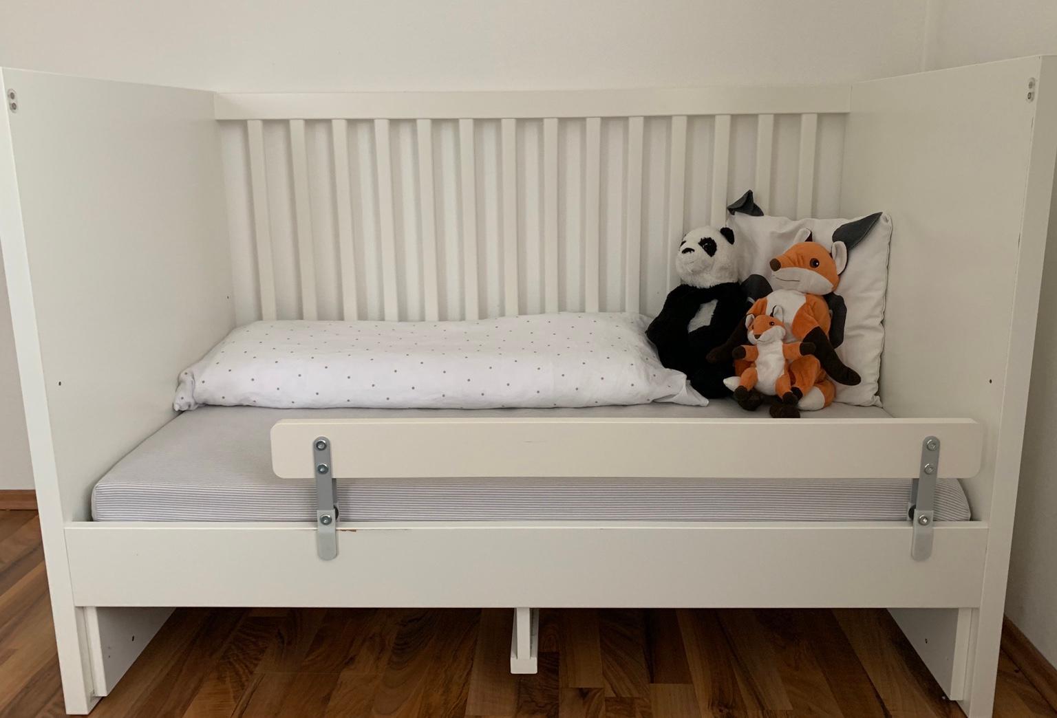 Kinderbett von ikea | hallo, meine tochter ist 3,5 und schläft in ihrem babybett, das zum juniorbett umgebaut ist.